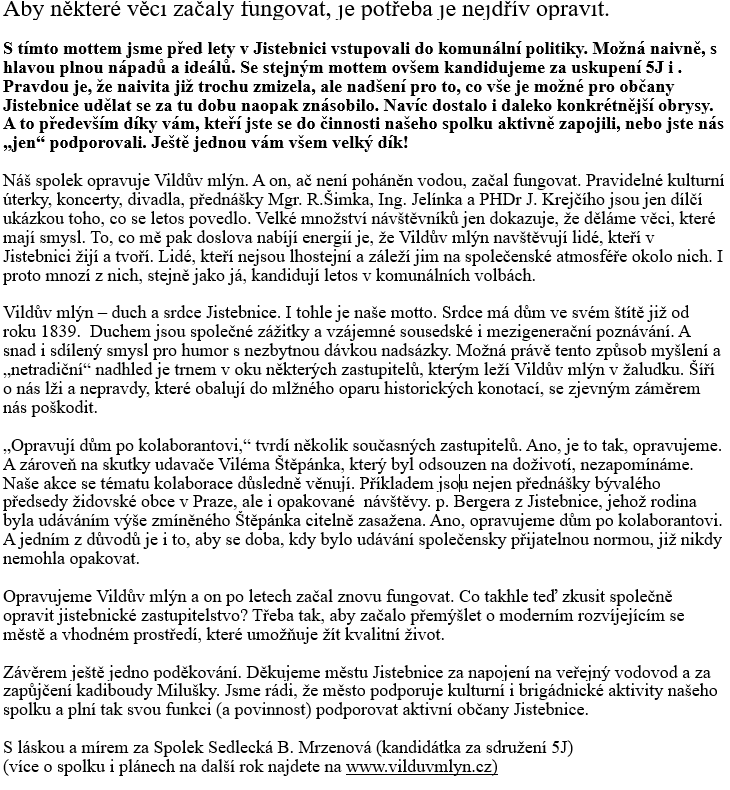 Jistebnický Zpravodaj- článek